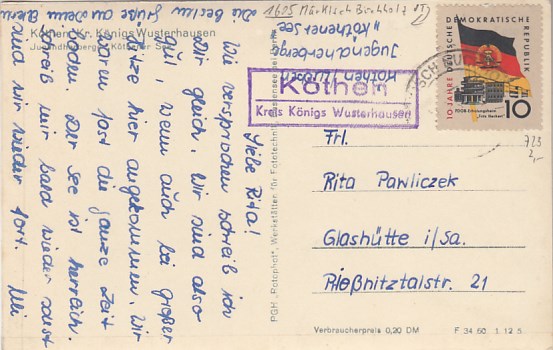 Märkisch Buchholz OT Köthen Jugendherberge Landpoststempel 1960