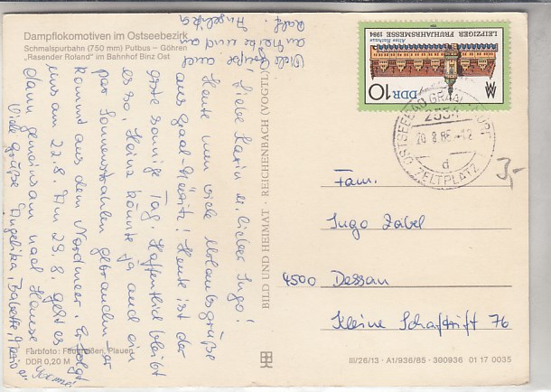 Eisenbahn Dampflok Schmalspurbahn kleinbahn Putbus-Göhren im Bahnhof Binz Zeltplatz Stempel