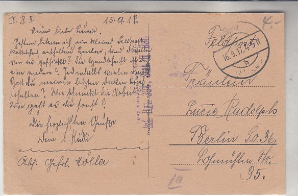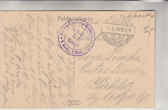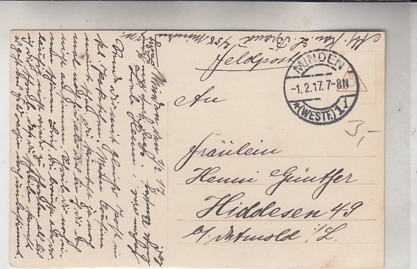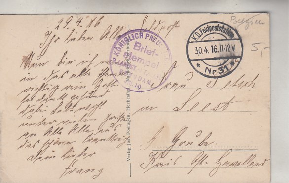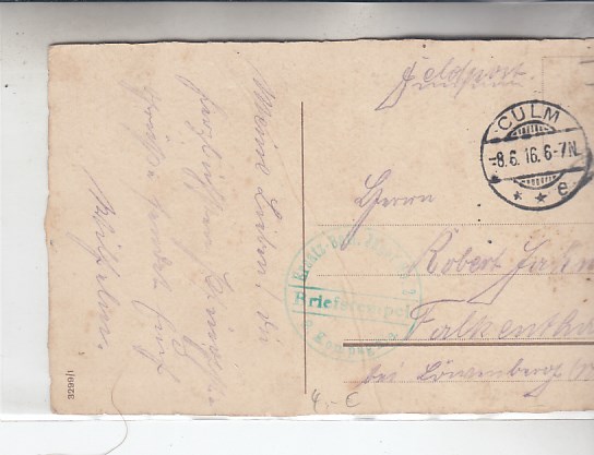 Strassenbahn Herbesthal 1916 Feldpoststempel