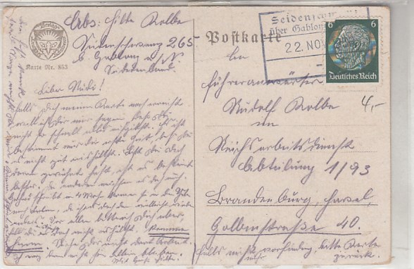 Rietz bei Treuenbrietzen Gastwirtschaft zur Weinstube Landpoststempel 1937