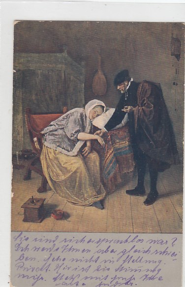 Handwerk Berufe Stoffe Spinnen Spinnrad Trachten Stempel Plau Mecklenburg 1906