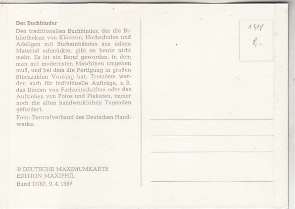 Handwerk Berufe Buchbinder Sonderstempel Bonn