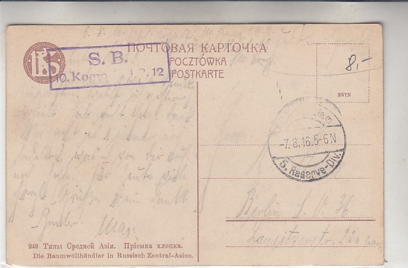 Handwerk Berufe Landwirtschaft Baumwolle Baumwollhändler Russland Zentral-Asien Feldpoststempel