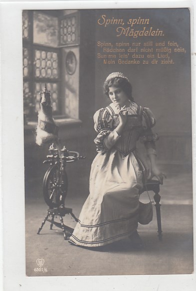 Handwerk Berufe Stoffe Spinnen Spinnrad Trachten Sprüche Feldpoststempel Minden 1917