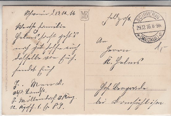 Glückwunsch AK Neujahr Ansichtskarte Feldpoststempel Schwerin