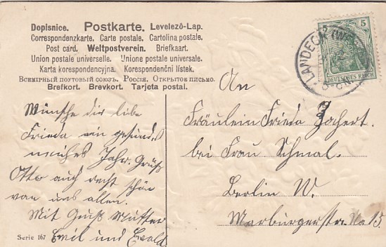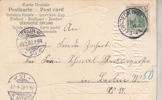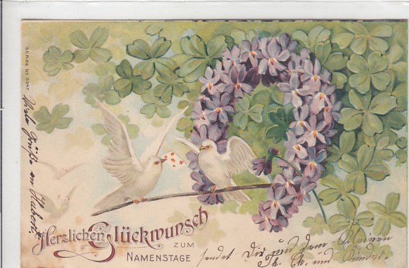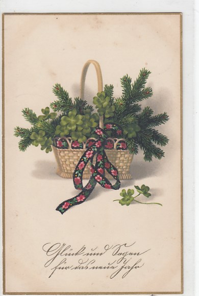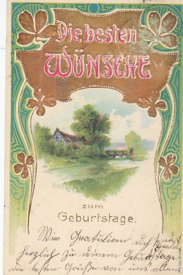 Glückwunsch AK Ansichtskarte zum Geburtstag Prägekarte Kleeblatt Jugendstil Stempel Landeck