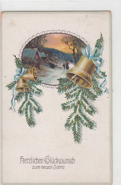 Glückwunsch AK Neujahr Ansichtskarte Klingel Stempel Tannwald-Schumburg