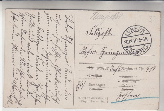 Glückwunsch AK Neujahr Ansichtskarte Feldpoststempel Lübben 1916