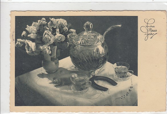 Glückwunsch AK Neujahr Ansichtskarte Stillleben Landpoststempel Banzendorf Gransee