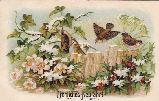 Glückwunsch AK Neujahr Ansichtskarte Prägekarte Vögel Stempel Landeck