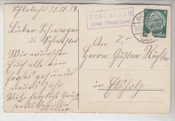 Glückwunsch AK Neujahr Ansichtskarte Landpoststempel Schlalach Brück in der Mark