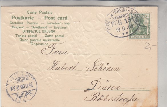 Glückwunsch AK Ansichtskarte Namenstag Bahnpoststempel Köln-Bonn