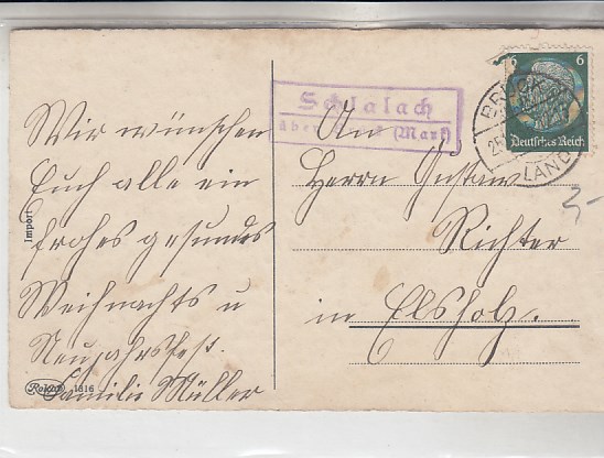 Glückwunsch AK Ansichtskarte Frohe Weihnachten Landpoststempel Schlalach Brück