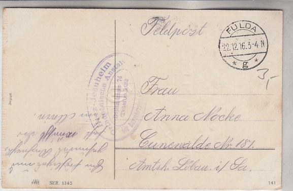 Glückwunsch AK Ansichtskarte Frohe Weihnachten Feldpoststempel Fulda