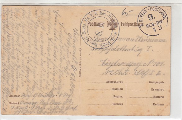 Adel Monarchie Kronprinz feldpoststempel 8. Reservekorps A
