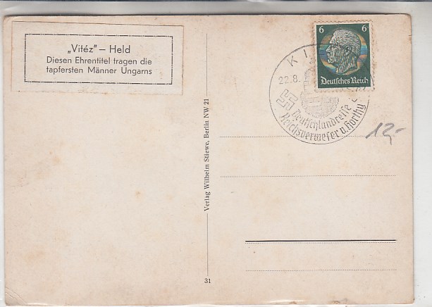 Adel Monarchie Nikolaus Horty von Nagybanya Ungarn Vitez Sonderstempel Kiel Propaganda