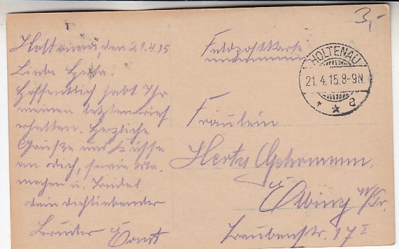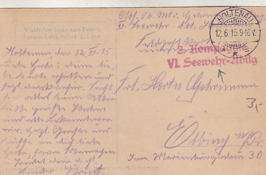 Adel Monarchie Kronprinz Feldpoststempel Holtenau 1915