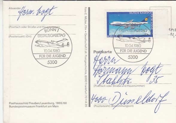 Postkutsche Lauenburgische Post-Expedition Sonderstempel Bonn