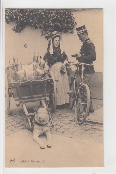 Hundekarren Belgien Laitiere flamande Feldpoststempel K.D.Feld-Poststation Fahrrad Postbote