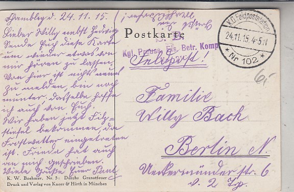 Adel Monarchie Albrecht von Würtemberg Feldpoststempel 1918