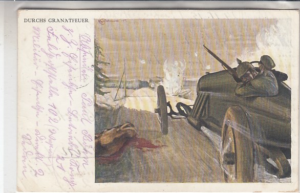 Auto Militär Soldaten Durchs Granatfeuer Feldpoststempel 1.WK 1915