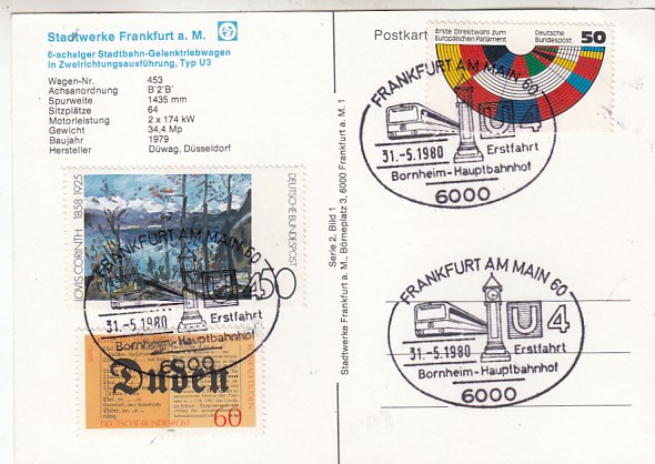 Strassenbahn Frankfurt am Main Stadtbahn Sonderstempel Erstfahrt 1980