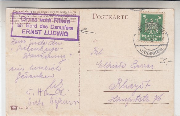 Motorschiffe Raddampfer Stempel Ernst Ludwig Die Marksburg 1925
