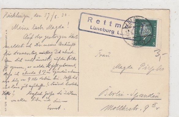 Scherenschnitt Ansichtskarte Landpoststempel Rettmer 1930