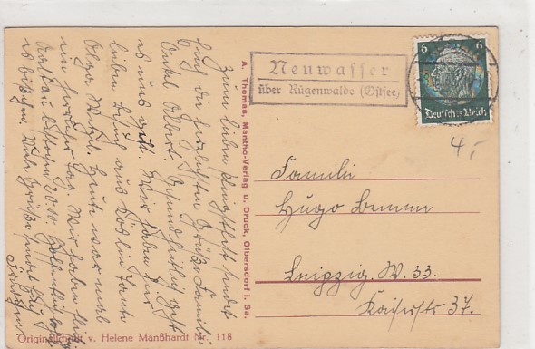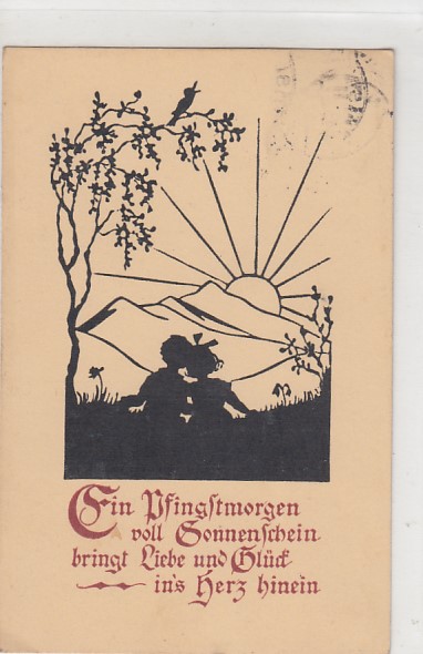 Scherenschnitt Ansichtskarte Pfingsten Landpoststempel Neuwasser Rügenwalde