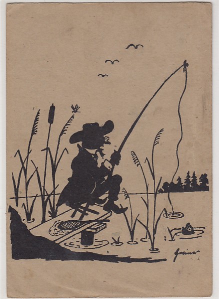 Scherenschnitt Ansichtskarte Angeln Stempel Zehdenick 1947