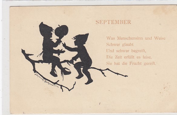Scherenschnitt Ansichtskarte September Sprüche feldpoststempel Barmen
