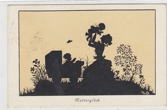 Scherenschnitt Ansichtskarte Mutterglück feldpoststempel Barmen 1918