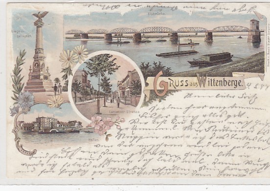 Wittenberge an der Elbe Litho Ansichtskarte Bahnpoststempel Magdeburg Wittenberge 1897