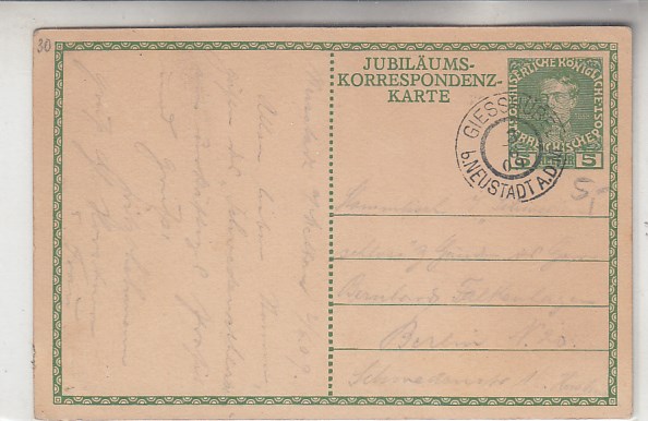 Privatganzsache Wien Österreich Jubiläumskarte König Stempel Giesshübel 1909