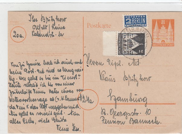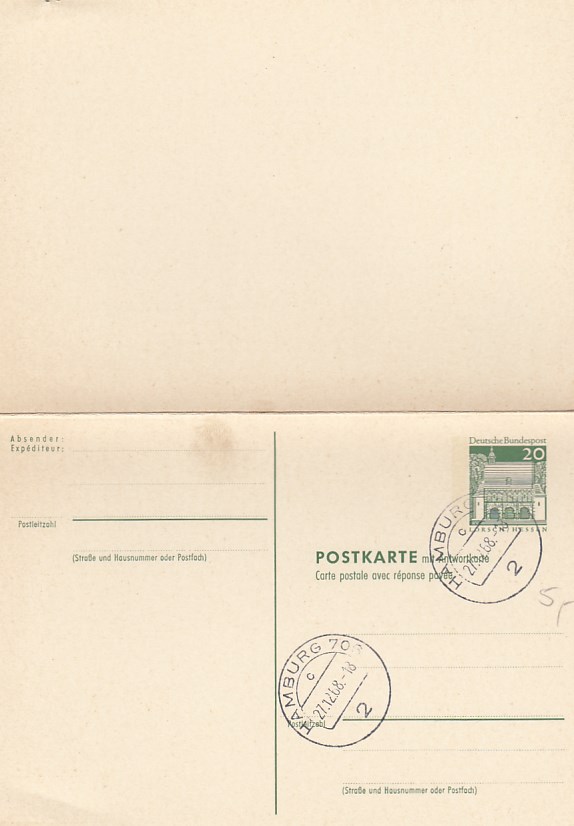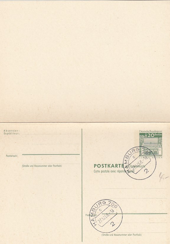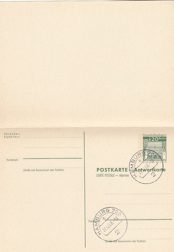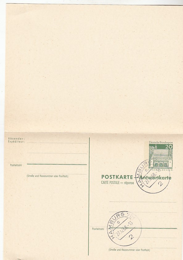 Privatganzsache Klappkarte Deutsche Bundespost 20 Pfennig Stempel Hamburg