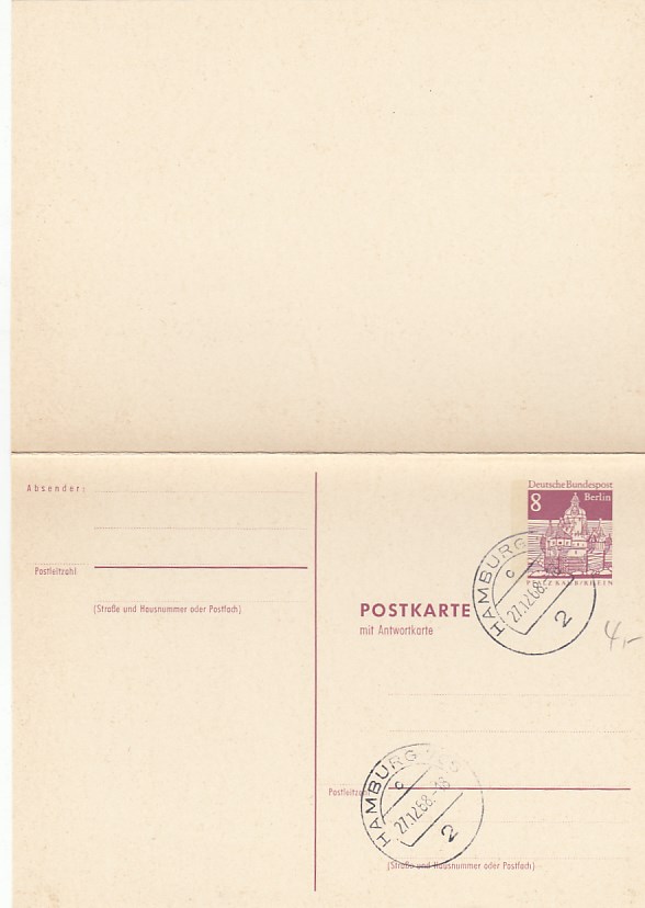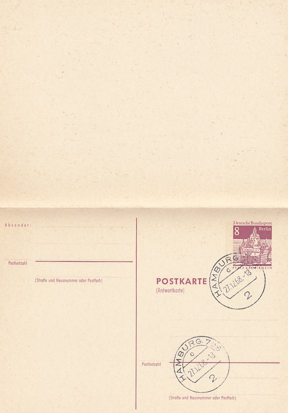 Privatganzsache Klappkarte Deutsche Bundespost 8 Pfennig Stempel Hamburg