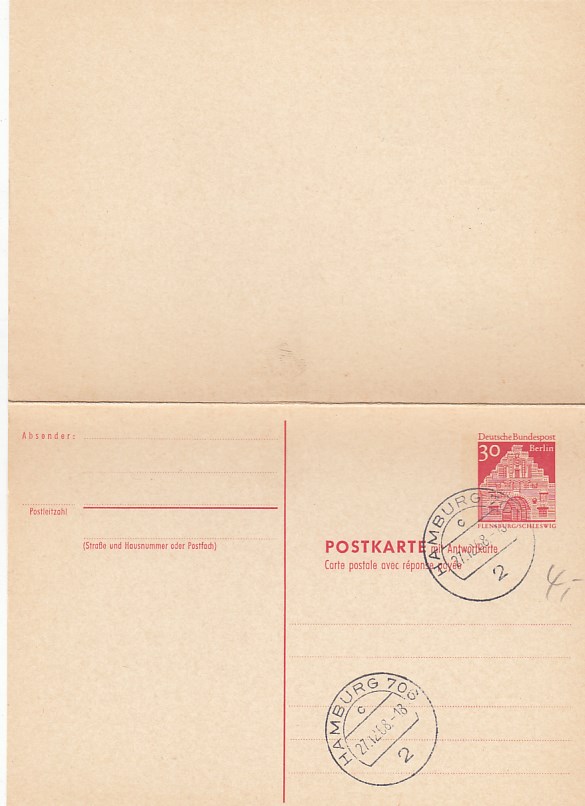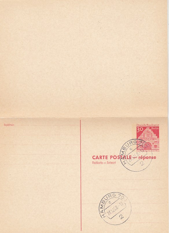 Privatganzsache Klappkarte Deutsche Bundespost 30 Pfennig Stempel Hamburg