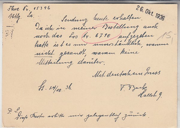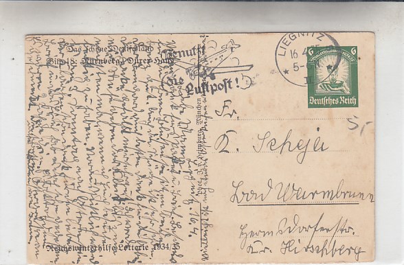 Privatganzsache Deutsches Reichswinterhilfe Lotterie 1934/35 Nürnberg Stempel Liegnitz
