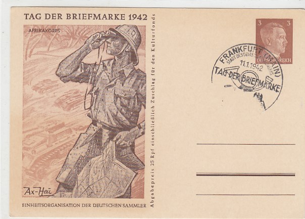 Privatganzsache Deutsches Reich Tag der Briefmarke Afrikakops Stempel Frankfurt am Main 1942