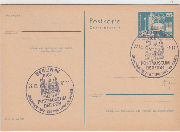 Privatganzsache 25 pfennig DDR Berlin mitte Sonderstempel