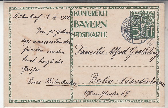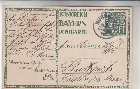 Privatganzsache Künstlerkarte Diez Königreich Bayern Stempel Nürnberg 1911