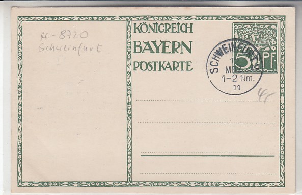 Privatganzsache Künstlerkarte Königreich Bayern Stempel Schweinfurt