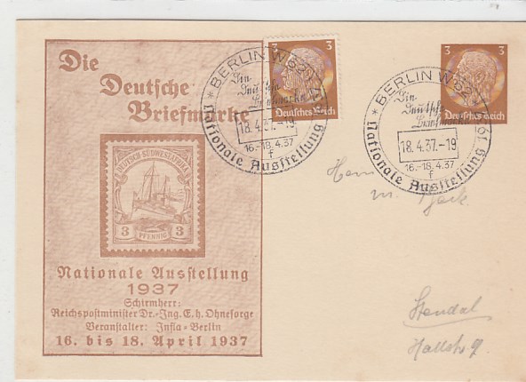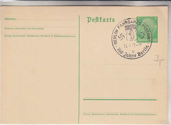 Privatganzsache Stempel Berlin 30 Januar 1938 P267