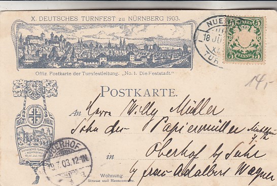 Sonderstempel Deutsches Turnfest Frankfurt am Main 1908 Sport