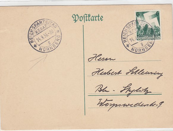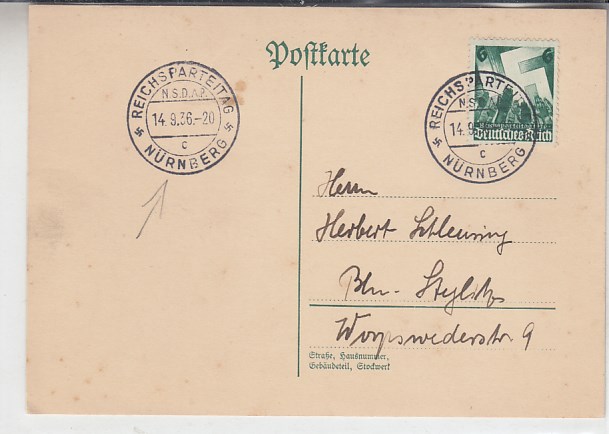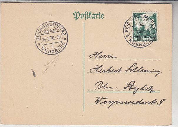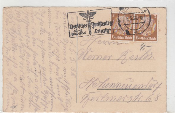Sonderstempel Deutscher Juristentag 1936 Leipzig auf AK Glückwunsch