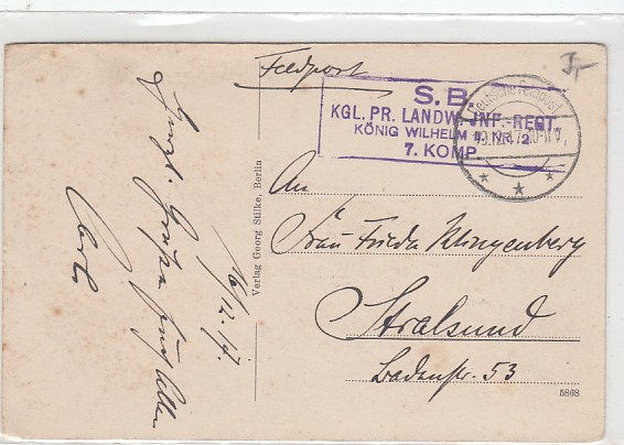Feldpoststempel Landwehr König Wilhelm auf AK Russland