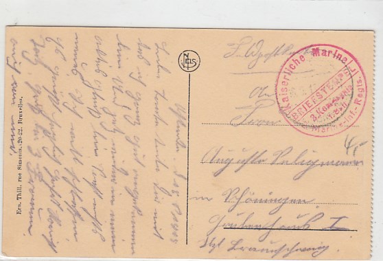 Feldpoststempel Matrosenregiment auf AK Ostende Marine 1.WK 1915