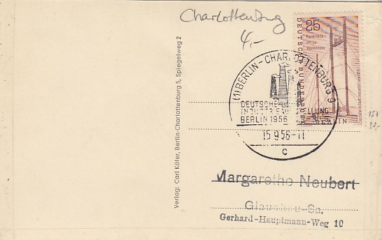 Berlin Charlottenburg Industrieausstellung 1956 Sonderstempel