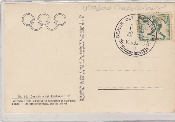Berlin Charlottenburg Olympiastadion Luftbild Olympische Spiele 1936 Sonderstempel