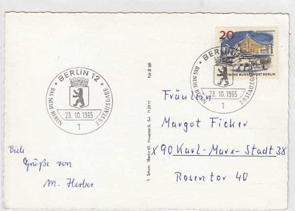 Berlin Tiergarten Philharmonie 1965 Sonderstempel
